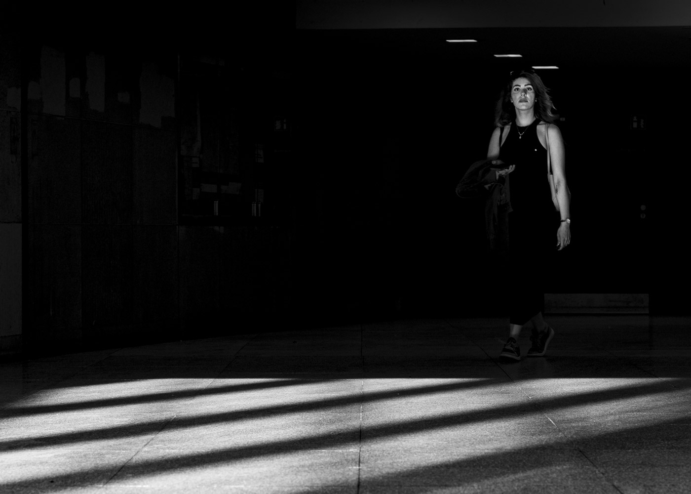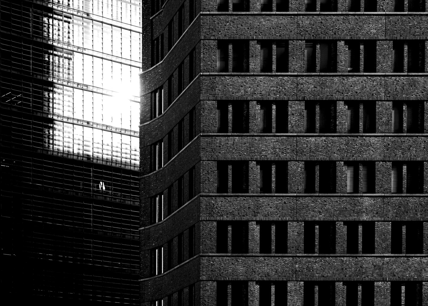 This ongoing series traces Berlin in evening light through black‑and‑white photographs. It follows streets, facades, and fleeting encounters as the city shifts from day to night. Through this approach to city photograpy, the urban landscape becomes a space of exploration for the interplay of architecture, shadow, and contrasting light. The arrangement of the images shows the city as a room in which human presence, architectural form, and visual structure intertwine.